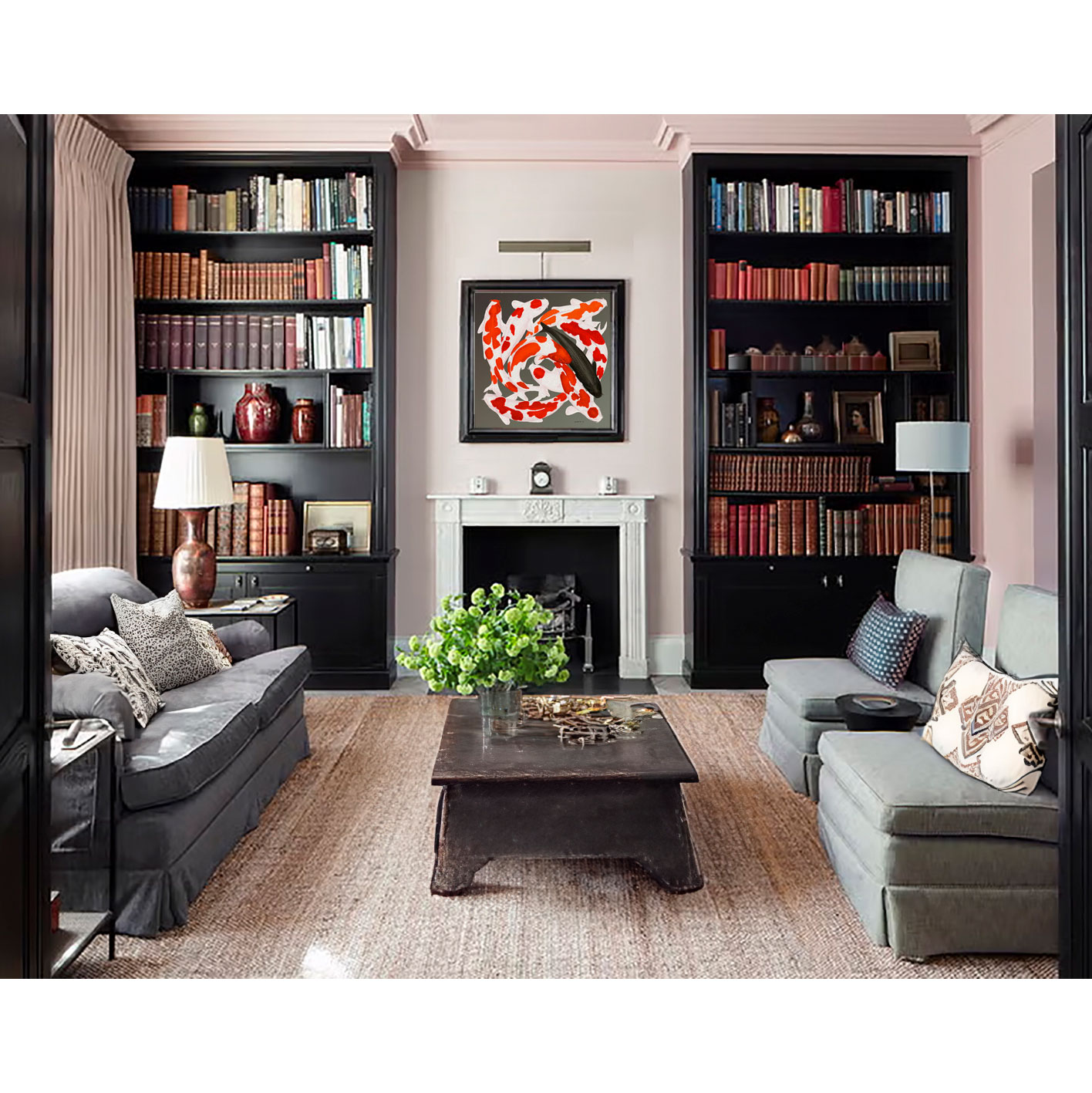 This luminous composition features a dynamic arrangement of koi carp in vivid reds, ivory white and velvet black. It is created from an ink painting with digitally enhanced colours in Arlette’s signature naturalistic yet slightly stylised aesthetic, a balance between organic realism and graphic clarity. The Koi are structured around a circular flow that evokes natural motion and harmonious wholeness.